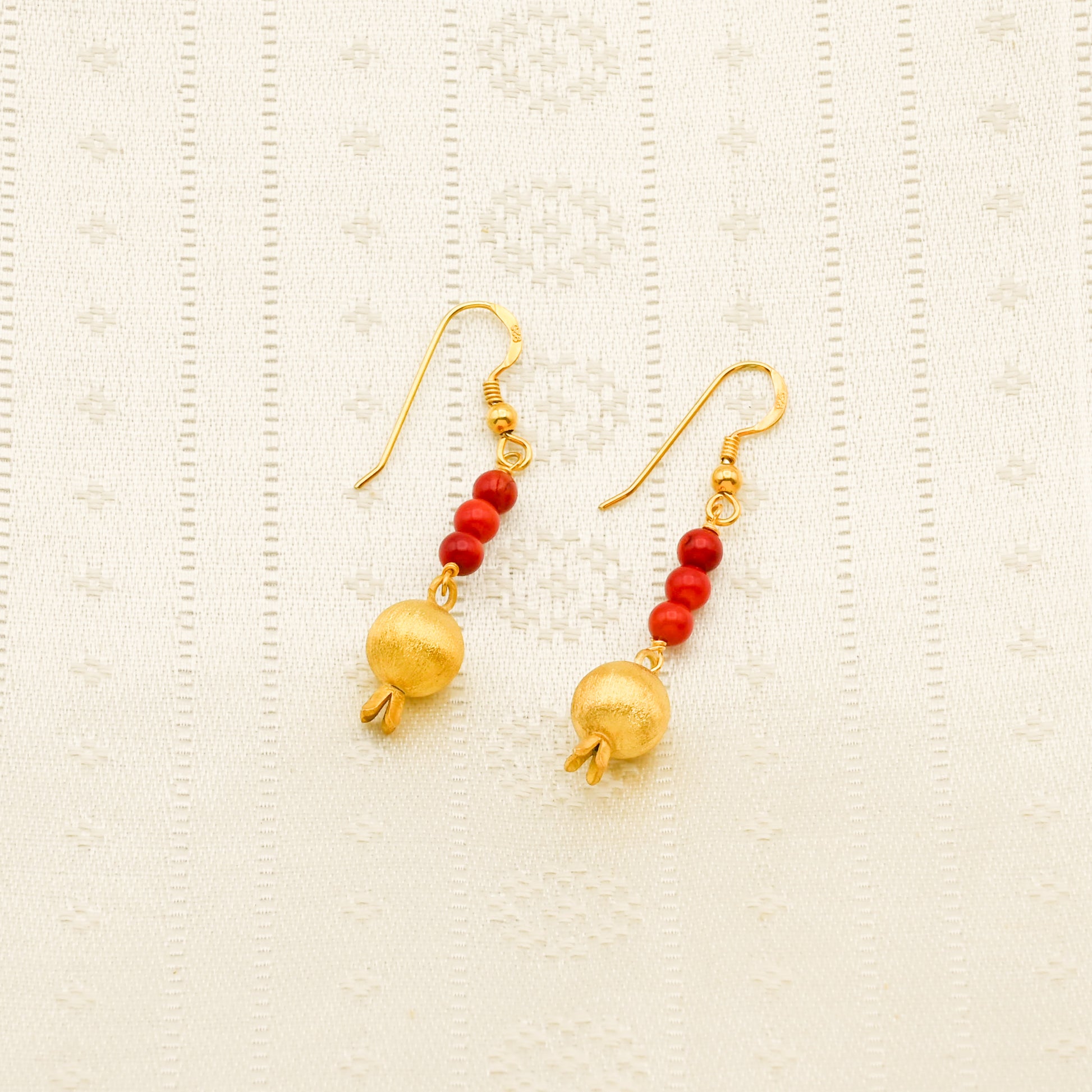 赤い珊瑚のビーズがザクロの実を思わせる、アクセントとしてもお使いいただけるデザインです。